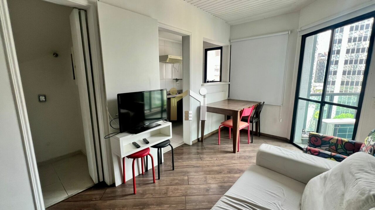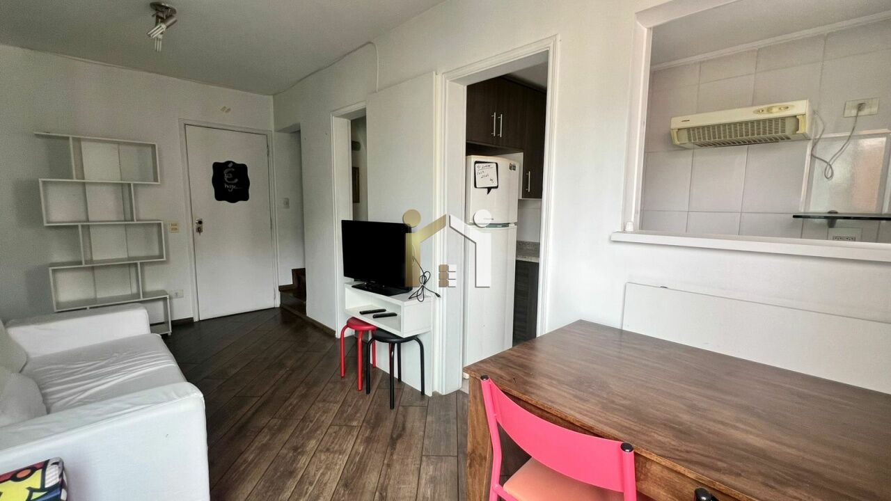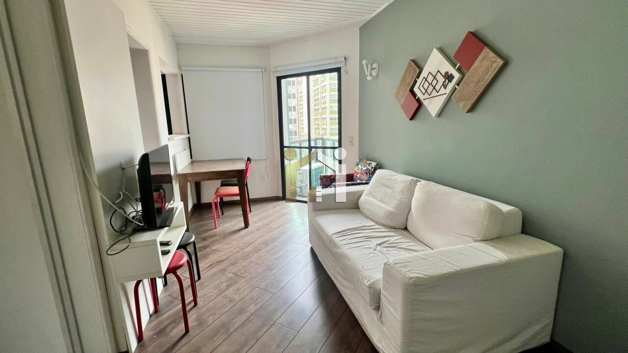 Apartamento a venda no itaim com 50m², 2 dormitórios e 1 vaga. O imóvel possui armários embutidos, sala para 2 ambientes, cozinha americana, sala de jantar, varanda e área de serviço. O condomínio possui jardim, piscina, piscina infantil, playground e salão de festas.